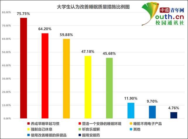 图为大学生认为改善睡眠质量措施比例。中国青年网记者 李华锡 制图
