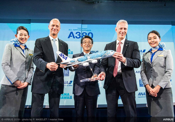 “空中客车很自豪能够将这架漂亮的飞机交付给全日空航空。”空中客车公司首席执行官托马斯·恩德斯表示,“A380拥有无与伦比的乘客舒适度,将使全日空航空能够以最高效率增加其繁忙的夏威夷航线的运力。我们相信,A380将在全日空航空取得巨大成功,我们将致力于为全日空航空提供全程支持。”