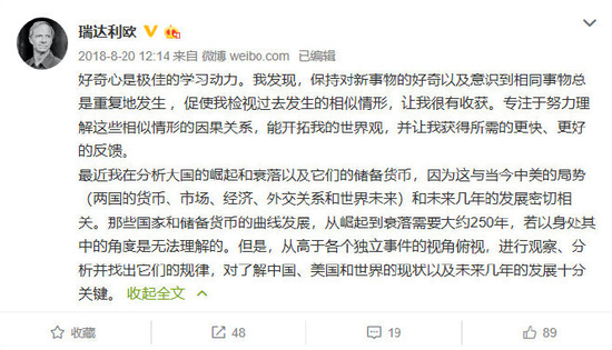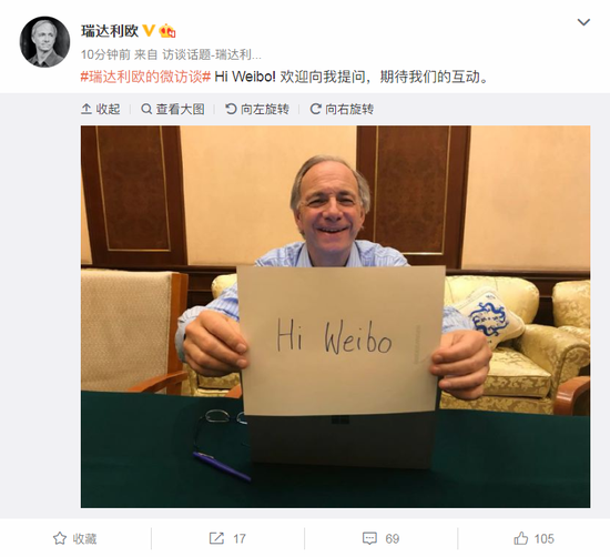新浪财经讯 3月21日晚,世界最大对冲基金桥水基金创始人瑞·达利欧在微博举行在线问答,回答关于其两本书《原则》和《债务危机:我的应对原则》的问题。