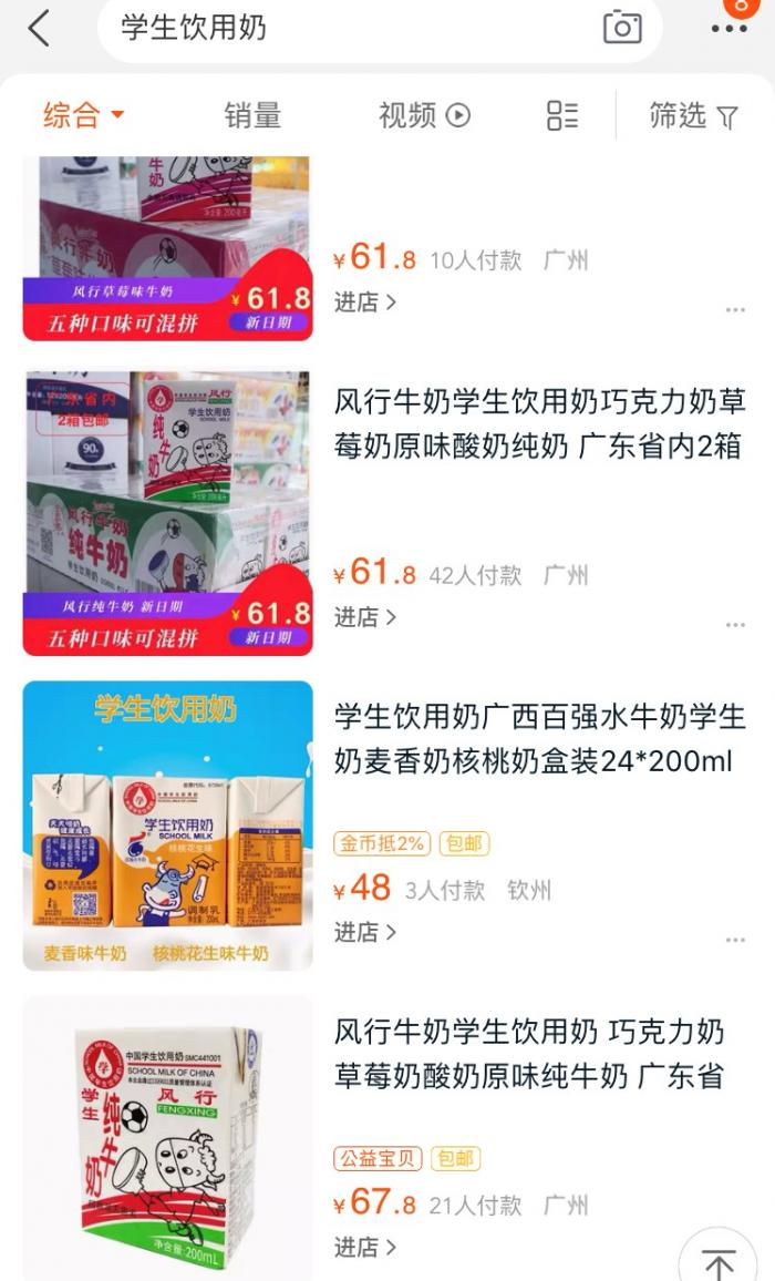 此外,在淘宝上搜索学生奶关键词时,也出现多家售卖学生奶的店铺。但这真的是正常的吗?