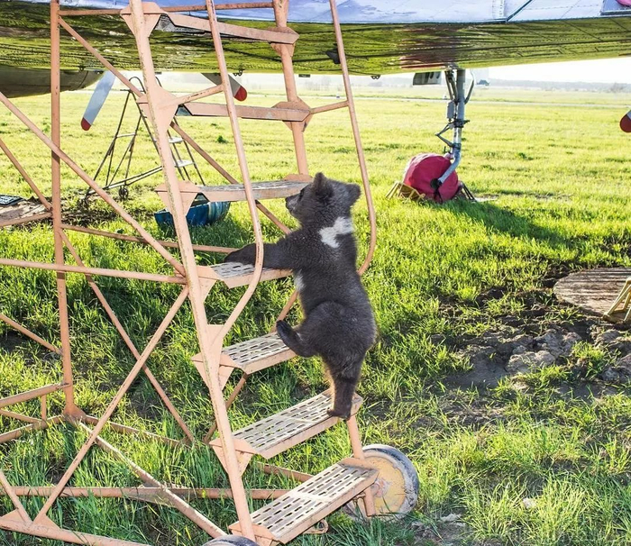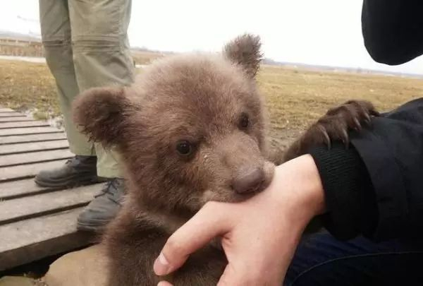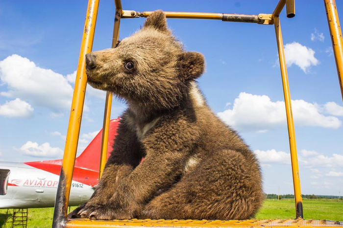 2016年8月,俄罗斯某机场旁,一只刚出生几个月的小棕熊迷路至此,发出了呦呦的叫声。