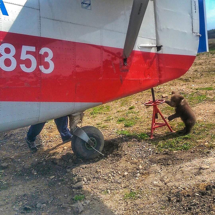 很快,阿熊就习惯了在机场的生活,不但成为了飞行员们的小可爱,而且成了机场内最强大佬的舔狗。