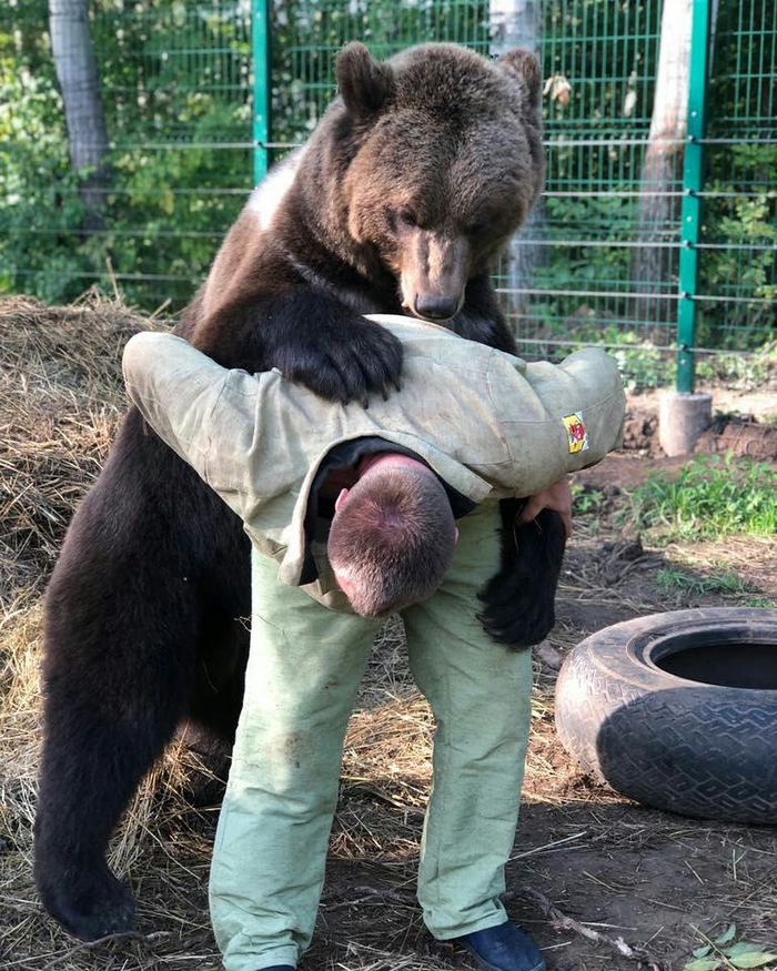 冲出了铁笼的阿熊跟伊万拥抱在一起,忍不住兴奋地跳跃。