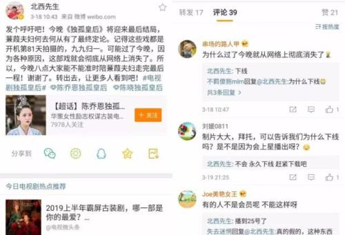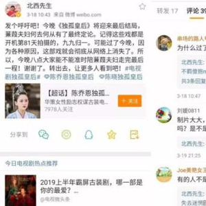今日下午,业内一些影视公司从业人员告诉镜像娱乐确有此事。其实,从最近行业的一些动向也不难发现此事早有预兆,日前,三大视频网站剧集推荐位上热门古装剧《东宫》《招摇》《倚天屠龙记》已经全部消失。此外,《独孤皇后》原制片人@北西先生3月18日发布微博表示《独孤皇后》大结局后将从网络消失,并称是永久下线,之后其又表示播到25日将彻底消失,这或许和今日所爆新规不无关系。