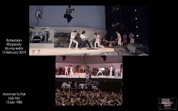 在观影过程中,观众有时会分不清自己是沉浸在电影中,还是为皇后乐队和弗雷迪·默丘里的人格魅力所折服。如果是皇后乐队的歌迷,或许还会为主创团队对场景还原的高要求而感动。片尾长达20分钟的“Live Aid”演唱会片段,大到沸腾的人海、汗水淋漓的乐队其他成员,小到弗雷迪·默丘里的每一次挥拳,钢琴上的可乐和啤酒,都力图真实还原当年的舞台场景。当然,这也得益于皇后乐队成员布莱恩·哈罗德·梅、罗杰·泰勒,弗雷迪生前的私人助理Peter Freestone的保驾护航,他们对拉米在电影中的造型、服装、道具、演唱会动作进行了严格把关。