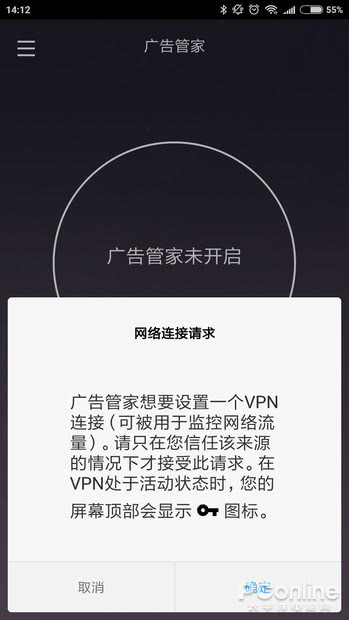 在手机上,去广告APP通过建立VPN通道接管全局流量,可监控你通过网络发送的信息