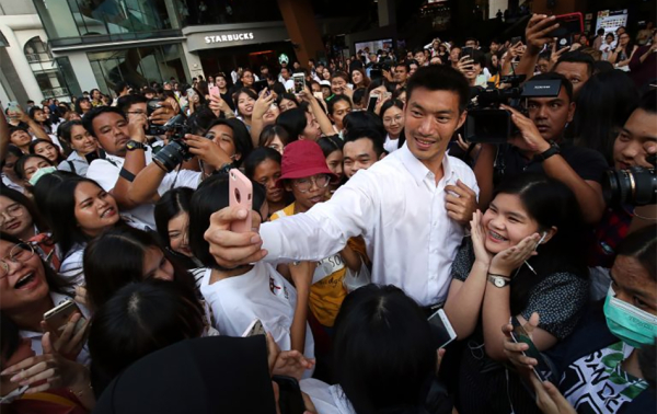 去年3月才刚刚成立的“新未来党”是众多政党中吸引年轻人较为成功的案例,他们尤其重视社交媒体的影响力。该党领袖塔纳通长期占据热门话题、善用脸书等社交媒体直播竞选活动。其“霸道总裁”的形象在年轻人中颇受欢迎,许多年轻女性支持者将他称作“Daddy”,而将自己称为“Fah”——这一昵称来源于一部在泰国风靡一时的爱情电视剧,剧中女主角Fah将男主叫做Daddy。