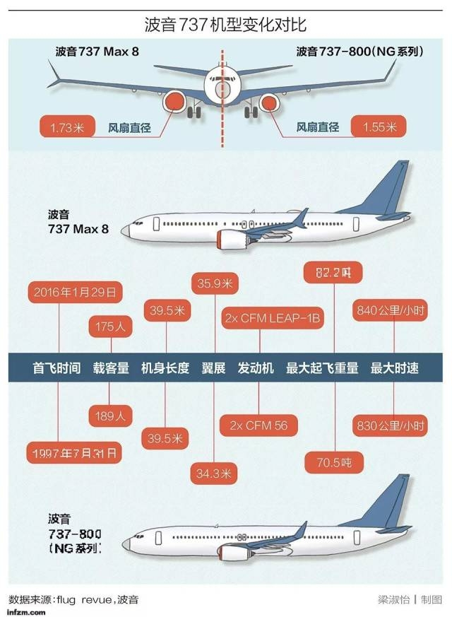 Max系列飞机还换上了更大的节油发动机。737的离地距离本就不高,尺寸增大的发动机需在机翼上安装得更高、更靠前,从而提供充分离地距离。曾有分析人员指出,这会改变飞机运行的稳定性,尤其在低速时的高倾斜和急转弯动作下,飞机更可能面临失速风险。