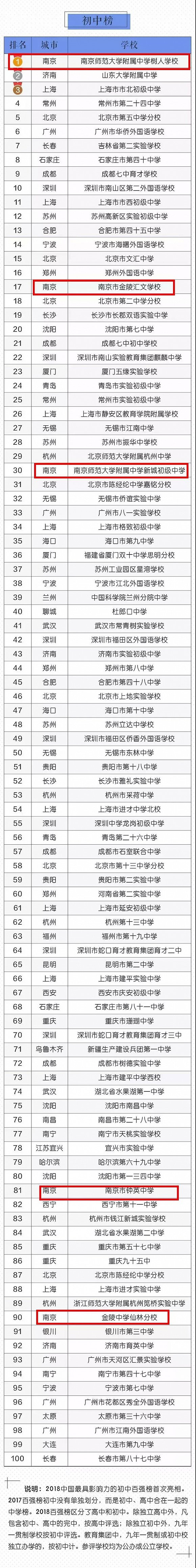 初中榜单中,南京表现抢眼!