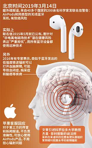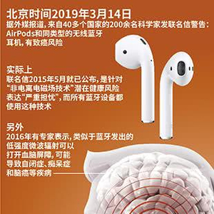 3月18日,苹果官网发布了无线蓝牙耳机AirPods升级版。然而,就在新版本发布不久前,有报道称250名科学家联名请愿,警告用户不要大量使用会发出无线辐射、用于Wi-Fi、蓝牙和通信的设备。报道特别点名AirPods,称长期使用可能会增加患癌风险。