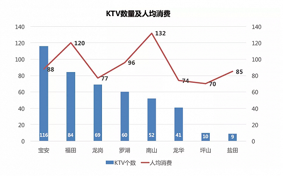 活力四射的夜生活也不仅限于市中心地带。在俗称为“关外”、城市发展进程稍弱的宝安区,酒吧分布潜力最明显,它的KTV数量、网吧数量在深圳各区中占比最大。在龙华、龙岗靠近市中心区域的地带,这里的酒吧消费可达到平均251-350元,消费能力不亚于南山、福田等核心地带的酒吧。