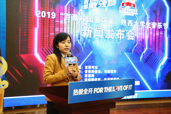 启动仪式上,西部网副总编辑徐芳清表示,在陕西省委网信办、陕西省教育厅的支持下, 2016年西部网联合百事可乐走进高校举办了35场选拔赛,2017年更是覆盖陕西、甘肃、青海、宁夏、新疆举办了57场选拔活动,共有上万名大学生报名参赛,唱响主旋律,传播好声音,放飞青春梦。活动立足陕西,辐射西北,放眼全国,西部网利用全媒体手段助推活动宣传推广,学生既可以登上舞台一展歌喉,也可以在比赛现场为选手加油呐喊,还通过直播在线观看比赛盛况,优良的线下体验和微博、微信、手机、PC全覆盖的线上宣传完美结合,实现了线上线下两个音乐节同样精彩。