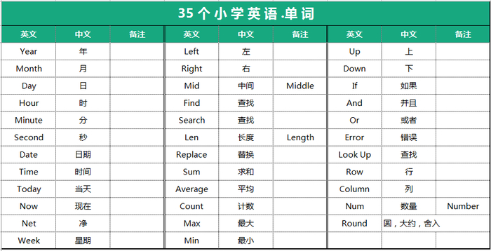 至于数学,只要你会四则运算,会比大小,再加上这35个小学单词,就会在Excel中写公式。
