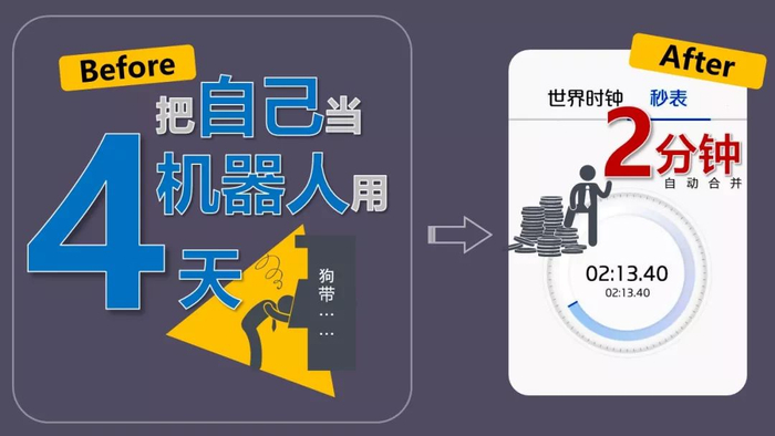 2分钟就搞定了她原来4天的工作,效率提高近3000倍,实际操作的只不过是几个按钮而已。