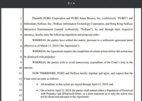 财经网讯 3月26日下午,据外国游戏媒体GamesIndustry消息,目前网易方面已于《绝地求生》开发商PUBG就之前的版权诉讼问题提交了和解。另有消息显示,负责盖案件的律师事务所也发表声明称,两家公司目前已就这两起投诉提交了和解文件,但目前尚不清楚和解条款以及是否涉及网易游戏的变更。