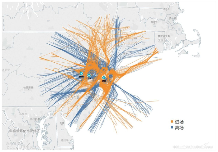 图:纽约机场群进离场航迹示意图