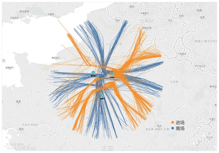 图:巴黎机场群进离场航迹示意图