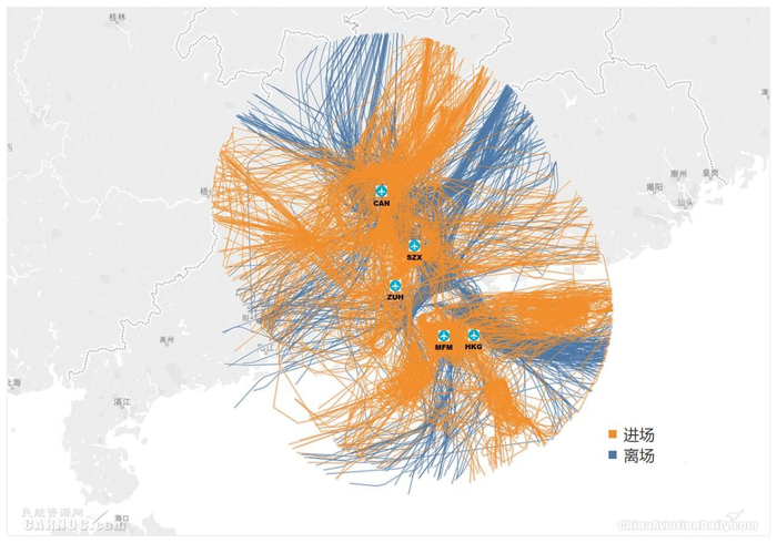 图:大湾区机场群进离场航迹示意图