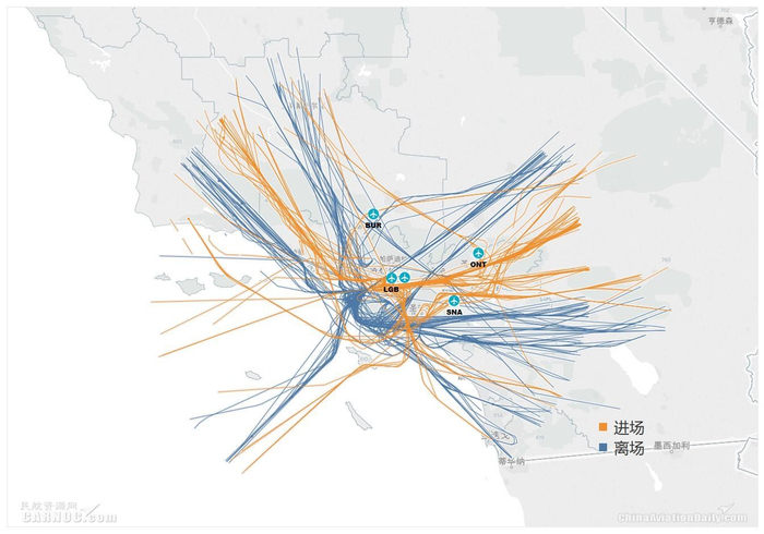 图:洛杉矶机场群进离场航迹示意图