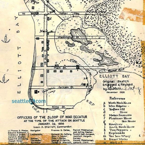 而问题的种子,早在西雅图选址之时就已埋下。1851年11月5日,西雅图的开创者亚瑟·丹尼(Author A. Denny)受西雅图广袤森林和安全深水港址的吸引,率领一批白人拓荒者——“丹尼团(Denny Party)”,由波特兰出发,来到埃利奥特湾东部海岸安营扎寨。