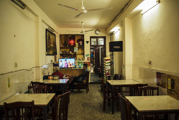 永兴街37号的洞庭酒家,是一家开了三十多年的长沙小馆,专做价格便宜的湘菜。酒家的正堂摆着财神和祭拜祖先的牌位,像一家唐人街上的中餐馆。在这里,美团与大众点评似乎从来不存在。一位穿着西装的中年男人刚吃罢饭,站在门口抽烟。没有客人的时候,老板边看电视边择菜。
