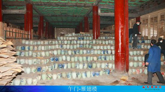 故宫有6200件各个时期不同材质的雕塑,但是过去没有家具馆,所以在92个小房间堆放。当时是拆了窗户和门把它们放下去的,一些小型的家具都摞了11层。