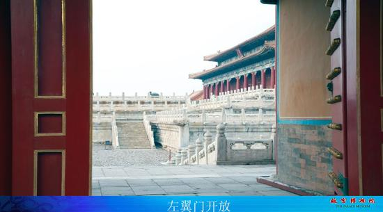 这个地方叫太和殿,人们过去只能往前走,其实两边都有一个门,有右翼门,有左翼门,几十年都是关着的。