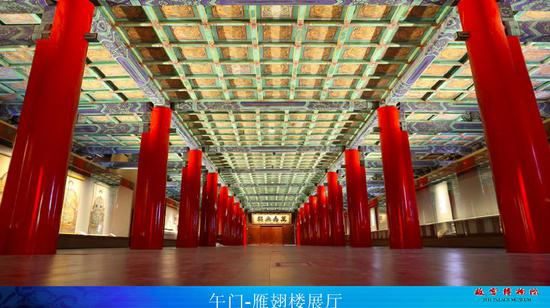 东华门今天是古建筑馆,我们是世界最大的木结构建筑群。4900件古建筑藏品轮流在这里展示,搭了一个二层的平台,人们可以登上二层的平台近距离的看我们的彩绘和古建筑。圆明园的烫样也得到了展示。