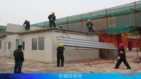 我们把135栋临时建筑进行了拆除。比如临时建筑拆,600人吃饭的大食堂被拆除,一部分办公区被拆除,宫廷部的库房区被拆除。在西部区域,审计室、基建办、预算处三个部门的办公区全部都拆除了。