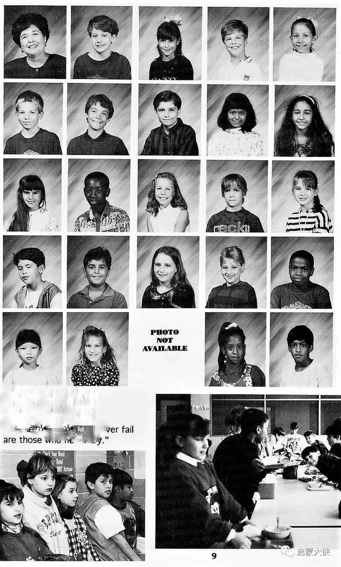 但令我吃惊的是,除了这些以白人为主的国家,亚洲国家的国旗只有一面日本国旗。我们天才班有9%的同学是亚裔,而在亚裔的同学中,大部分是华人。但是,在年刊的封面和封底都看不到中国的国旗。还有,我仔细查对了年刊中每个同学名字,也没有发现有一个日本人的姓名。我很清楚地记得,那年我们一起上戴维斯小学的天才班同学中,没有一个是日裔学生。我不理解校刊设计委员会是怎样决定要选用日本国旗的。不过我相信他们应该是出于无知而不是心怀恶意。