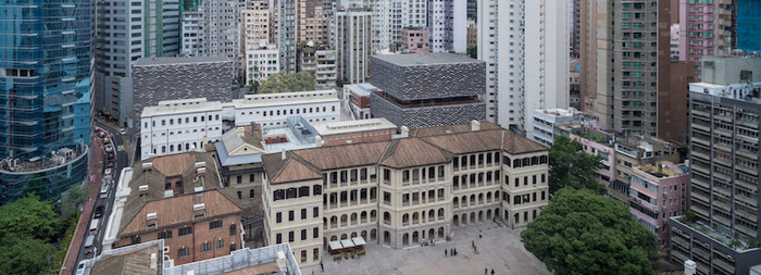 大馆的前身,是落成于1864 年、英国皇家海军登陆香港后建造的前中区警署建筑群,也是香港早期的司法重地。 包含后维多利亚风格的前中区警署、域多利监狱和希腊复兴建筑风格的前中央裁判司署。建筑群修复项目由香港赛马会与香港特别行政区政府合作牵头,经过12年陆续完成共 16 栋的全部修复工作。