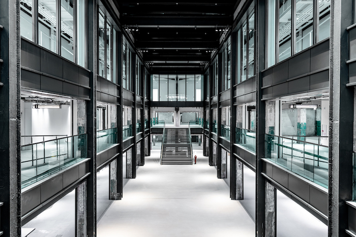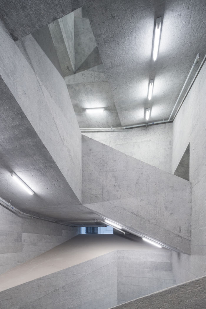 两座新建筑都采用100%再生铸铝的立面单元系统,内部则大面积地使用粗粝的混凝土,以保持新旧建筑之间历史感的流动。