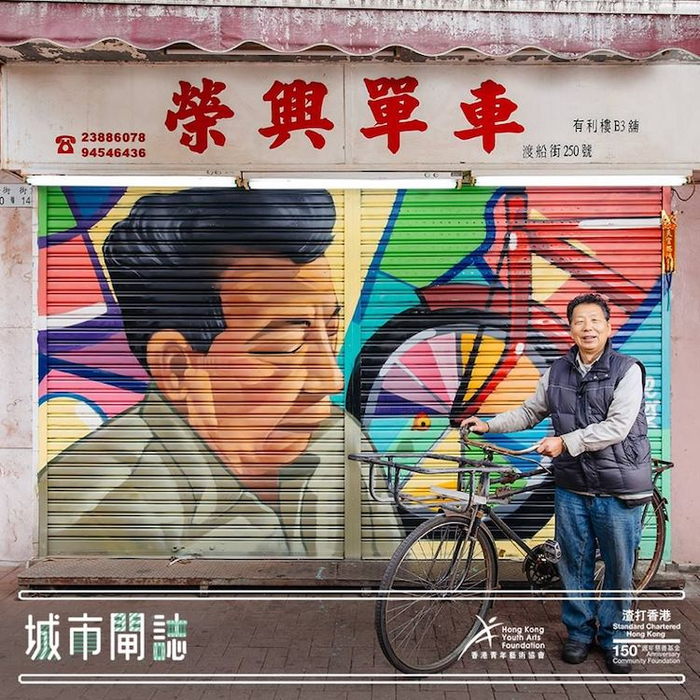 作为曾经的纺织产业聚集地,深水埗 也聚集了许多富有历史文化的老店,年轻艺术家通过小店铁闸涂鸦,为富有特色的店家量身打造了“铁闸艺术”,将店主个性或店铺故事娓娓道来,并由此发起“城巿闸志” 社区艺术计划。