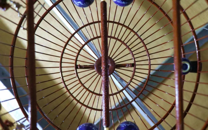 店里有一盏很老式的煤油灯,灯口早已坑坑洼洼,可见年代之久远。但别看这盏灯破旧,其实它非常重要!一个好的鸟笼,造型要流畅整齐,用一个字来说,就是“正”。赖伯说,从一侧看过去,每一根笼丝都与对面的在一条直线上,每一根之间都是等距的。