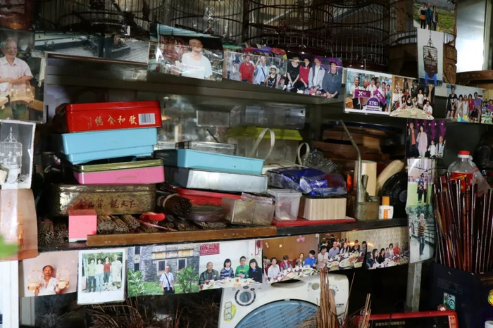 赖伯的店里贴着许多家人的照片。他的子女早已成家立业,各有成就,却没人愿意接手做鸟笼这份手艺,而他也不强求子女继承,更没有收徒,只期望着“能够做到脚抖手抖做不了的时候。”可以说,赖伯是广州年纪最大的一位制作鸟笼的老手艺人了。