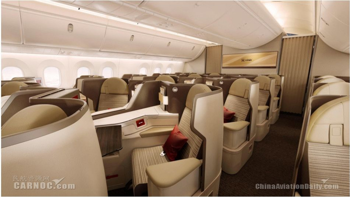 图:海南航空全新“梦之羽”客舱内饰787-9客机商务舱