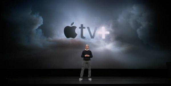图为:库克在发布会上介绍Apple TV+。   来源:苹果官网视频截图