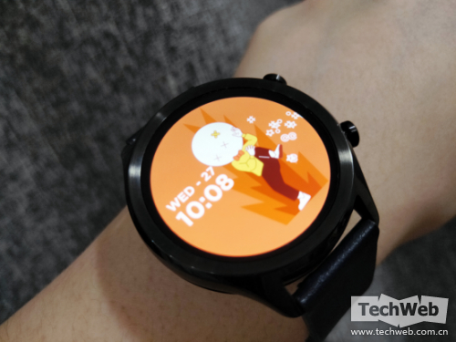 被表冠围绕的是一块1.3英寸AMOLED显示屏,分辨率为360x360,这也让TicWatch C2屏占比高达70.7%,远胜于其他友商产品,当手表屏幕被点亮后,全彩显示屏幕效果清晰细腻,无黑边设计尽显高端。