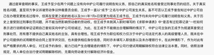 王成予此人经历“丰富”,就连姓名都改过多次。2016年,王成予曾因劳动争议起诉中护联和投资(北京)有限公司。一审败诉后,王成予上诉至北京市第三中级人民法院。