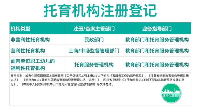 城市化观察网对我国3岁以下婴幼儿托育服务的总体规划和其他相关的政策进行了梳理(包括:宏观指导意见;注册、登记和业务指导;建筑设计标准;卫生保健;人品配置;税收优惠;政府购买服务),希望对相关的投资者、办学者、家长等有所帮助。