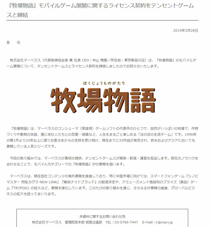 《牧场物语》是Marvelous游戏代表作之一,从1996年的首作至今历时20余年经久不衰得到了广大玩家的支持,而此次将由Marvelous负责提供素材、腾讯游戏负责开发、配信和运营,两家联手瞄准移动市场发展《牧场物语》IP。