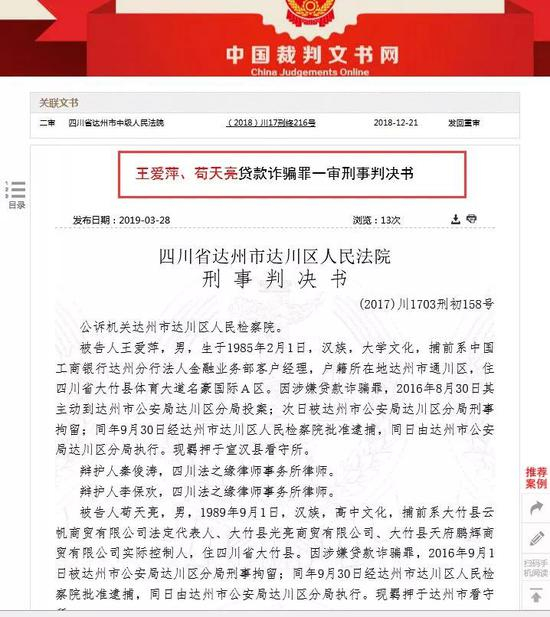 一审判决书显示,截至案发,王爱萍按照合同规定时间正常归还贷款3.06亿元。