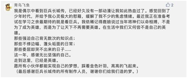 正是秉承着这样高要求的制作流程和水准,《巨兵长城传》才做到了厚积薄发和口碑爆棚。