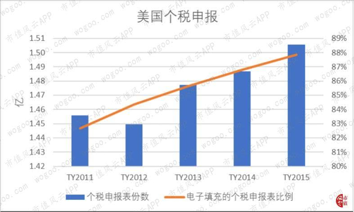 2011-15纳税年度,个税申报表使用电子填充(Electronically Filling)的比例稳步提高,报税软件的市场在扩大。