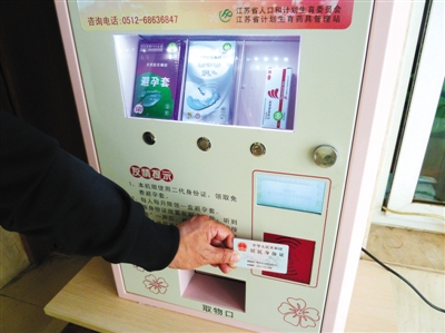 2013年4月26日,南京一家计生机构,多品种智能避孕药具发放机亮相。资料图片/视觉中国
