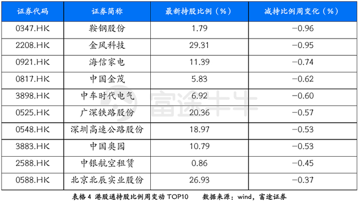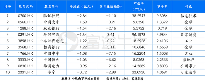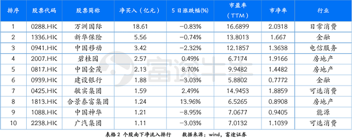 港股通板块个股方面,从南下资金买入及卖出活跃程度的维度来看,本周,消费、金融、房地产等板块交投较为活跃,净买入居前三的个股分别为万洲国际、新华保险、中国移动,净卖出居前三的分别为腾讯控股、中国太平、农业银行。