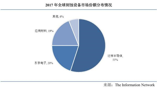 有统计显示,2017年,全球刻蚀设备市场份额的三巨头依然是泛林半导体、东京电子和应用材料,其他厂家份额极低。
