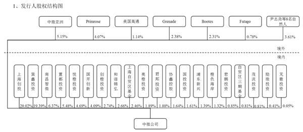 截至招股说明书签署日,中微半导体共有境外法人股东6名,境内法人股东20名,自然人股东8名,其中持有发行人5%以上(含) 股份或表决权的股东,包括上海创投、巽鑫投资、南昌智微、置都投资、中微亚洲、Grenade、Bootes、Futago、悦橙投资、创橙投资、 亮橙投资和橙色海岸。