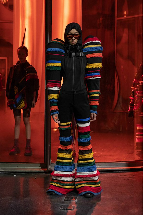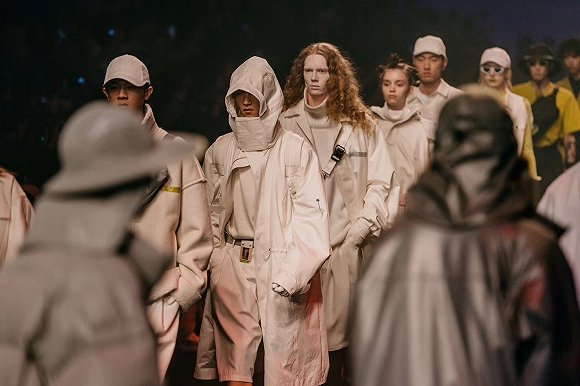 深圳潮流品牌ROARINGWILD本季以 “Urban Hotbox”为秀场主题,以期展示一个扭曲及夸张的城市新型态。亮色系西装、强廓形感军事外套、反光羽绒服、伞兵包等单品在怪诞迷幻的激光影响映射下视觉体验更为强烈。