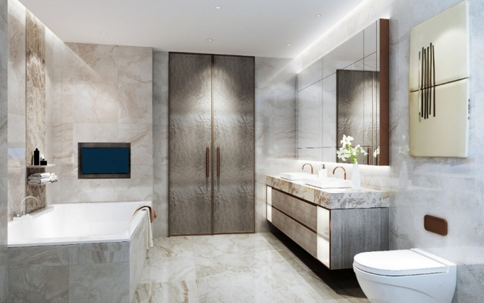 主卫浴室及步入式衣橱更是为城市塔尖人士的时尚品质生活提供完美而阔绰的空间体验感。